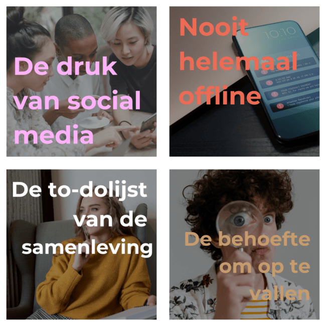 Veel externe stressfactoren, dat is zeker. Maar de grootste ben je zelf. Onze snel veranderende digitale wereld heeft je blootgesteld aan een breed scala aan kansen en mogelijkheden. Daarom zoeken veel jonge talenten zoals jij persoonlijke vervulling en een positieve impact in hun carrière. Ze willen een carrière die impact heeft op de samenleving en het milieu. Een carrière waar ze gepassioneerd over zijn en die in lijn is met hun waarden. Allemaal mooie idealen… Maar ook de reden waarom je waarschijnlijk veel druk op deze keuze legt. Je streeft vanaf het begin naar het hoogst haalbare, voelt de noodzaak om meteen de juiste keuze te maken.
