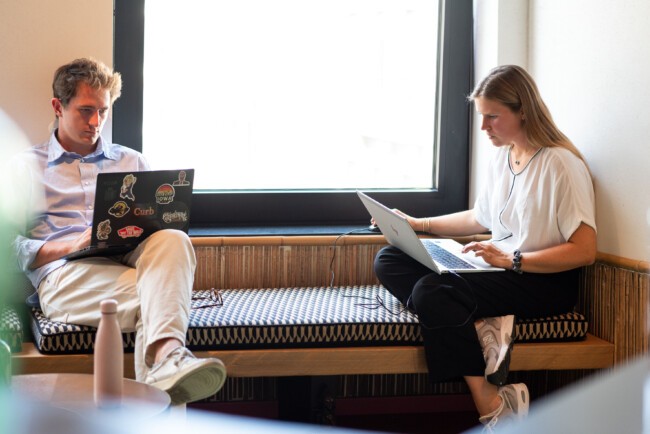 • Vergaderingen hebben de voorkeur tussen 10 uur ’s ochtends en 4 uur ’s middags. Werkcommunicatie kan plaatsvinden van 7 uur ’s ochtends tot 11 uur ’s avonds via WhatsApp & Slack.