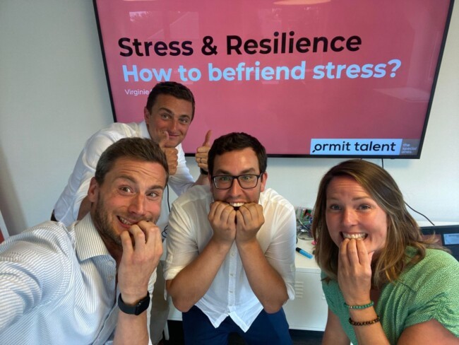 Toen ik bij Ormit Talent begon, had mijn oude maatje stress zichzelf weer uitgenodigd. Het herinnerde me aan mijn behoefte om uit te blinken, een betekenisvolle impact te maken en een waardevolle coach te zijn voor de trainees. Dus fluisterde mijn intuïtie me in om de kans te grijpen en een training over stress te geven, omdat ik diep van binnen wist dat het tijd was om woorden in daden om te zetten.